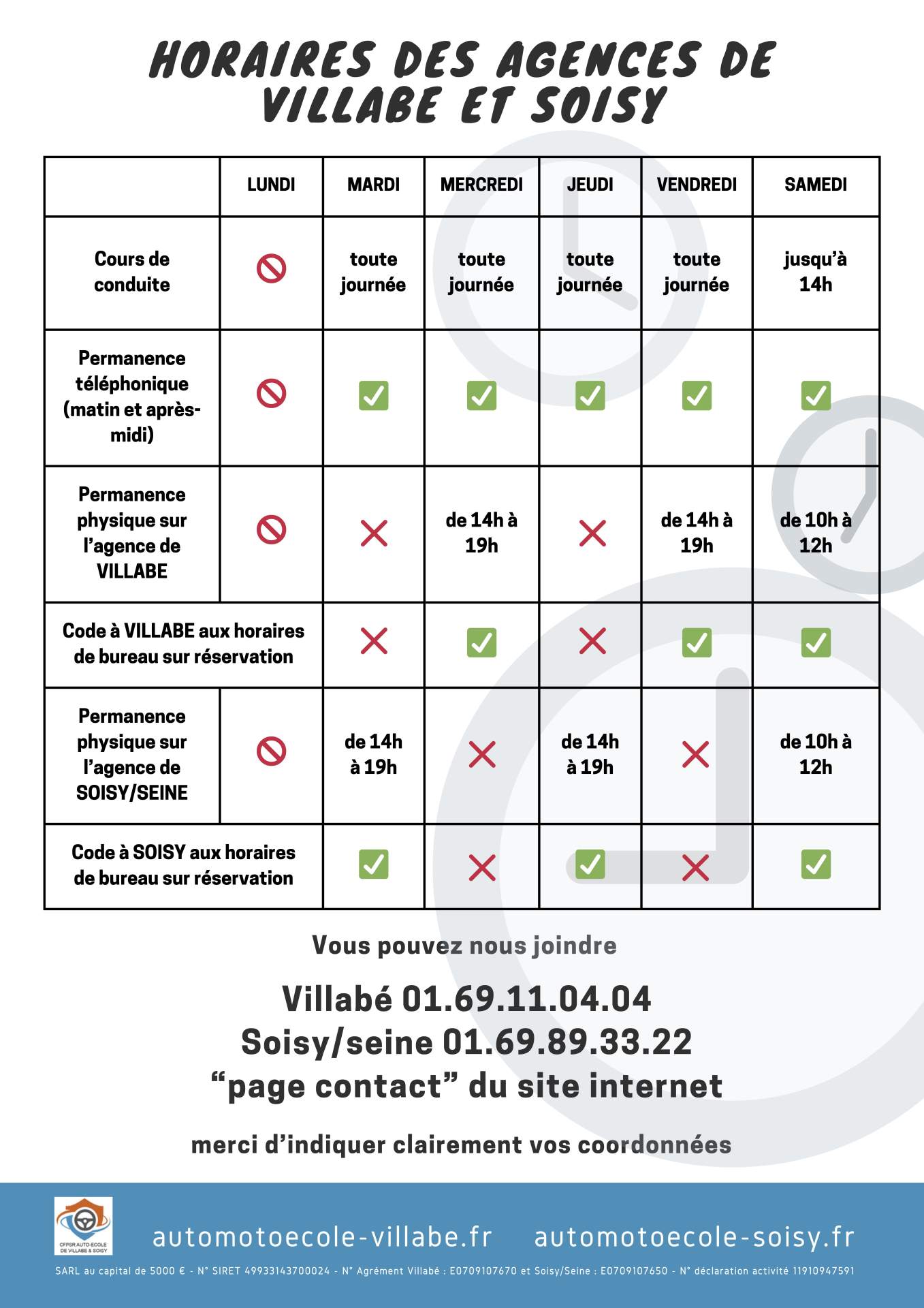 La deuxième semaine des vacances de février la permanence des bureaux sera assurée les mêmes jours que d'habitude de 16h à 18h30 uniquement, les formateurs étant en conduite sur le reste du planning.